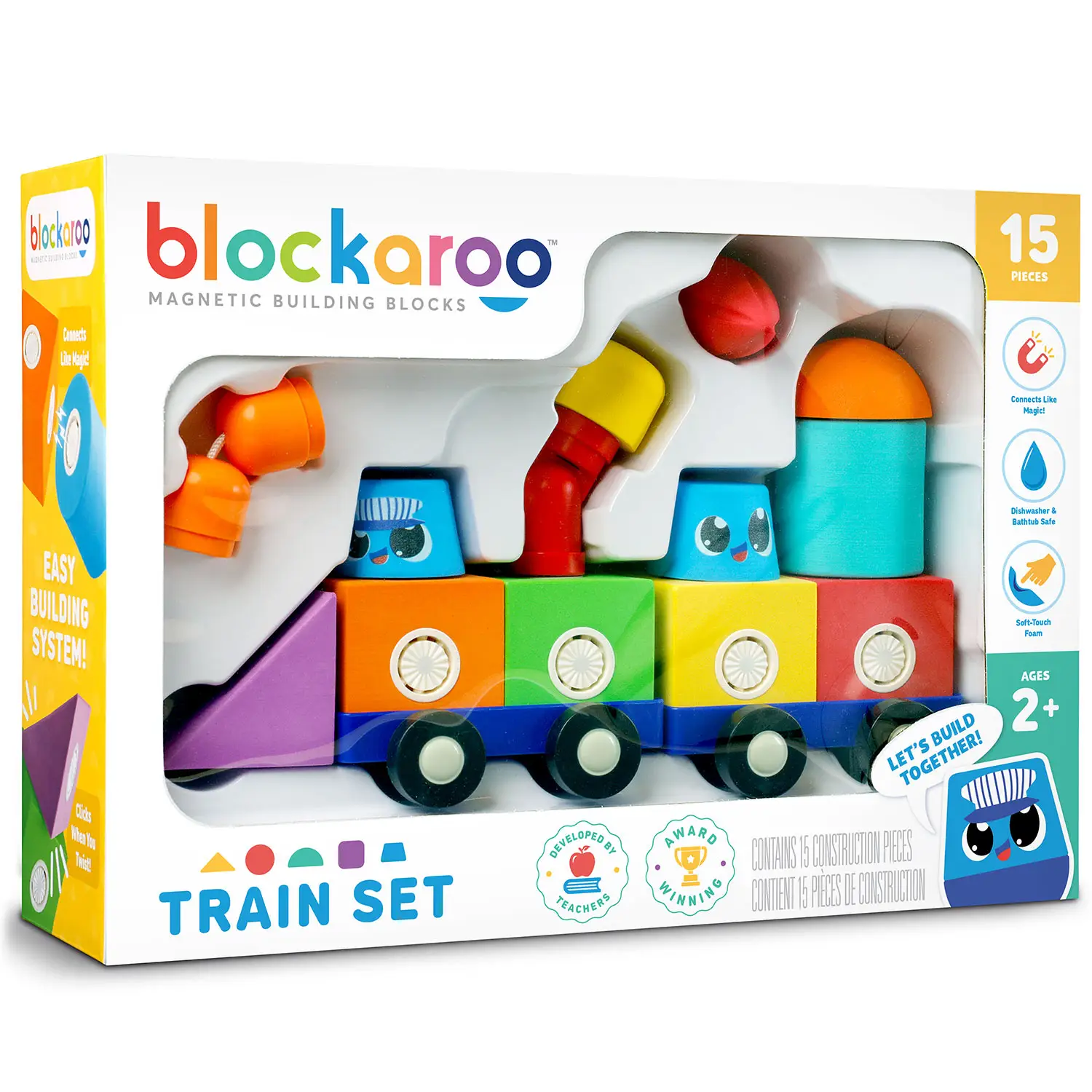 The 15-piece Train Set provides hours of fun thanks to the innovative magnetic system, which allows the blocks to connect like magic, every time.